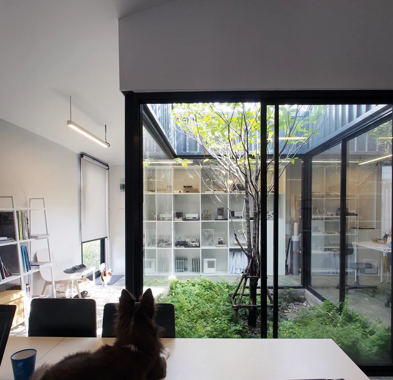 通過最小的窗戶和植被的使用在私人和公共場所之間創造了一個柔軟的屏障,從而保護了辦公隱私。