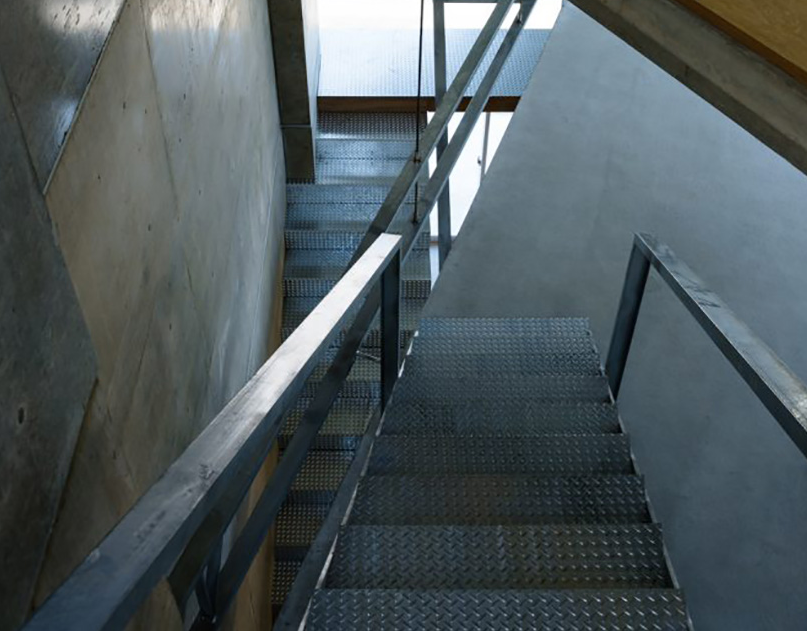 這家辦公室裝修以極其有限的預算(大約比普通混凝土建筑少60%)完善了混凝土結構,玻璃開口、鍍鋅鋼樓梯和極簡的懸掛扶手,設計時非常注意,不會破壞整體氛圍的寧靜。另外設計師還設計了一些內置家具,只使用Lauan膠合板,這是一種主要用于工藝品和背板的熱帶硬木材料。