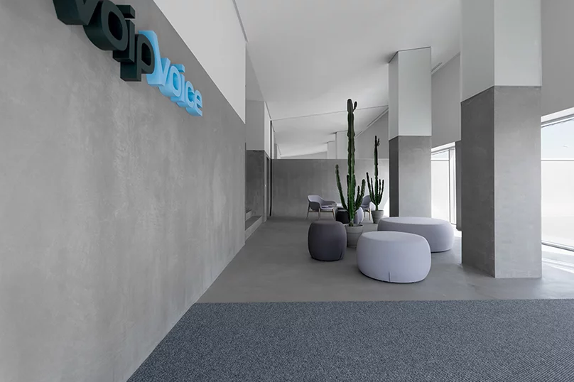 3.辦公室裝修設(shè)計(jì)通過(guò)在立面上使用相同的材??料,比喻回憶起數(shù)字網(wǎng)絡(luò)關(guān)注voipvoice的業(yè)務(wù)和當(dāng)代社會(huì)的引擎。