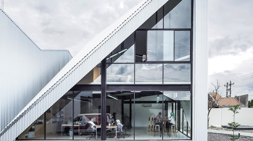 studio kota的'辦公室KL'是一個(gè)亭子建筑,作為工業(yè)設(shè)施的辦公室。該辦公室裝修項(xiàng)目的范圍還包括現(xiàn)有工廠的改造,場(chǎng)地規(guī)劃和通往生產(chǎn)區(qū)的橋梁。位于印度尼西亞日惹郊區(qū)的工業(yè)園區(qū)內(nèi)。該辦公室裝修項(xiàng)目由一家鋼鐵制造公司委托,需要在現(xiàn)有設(shè)施中增加辦公程序。
