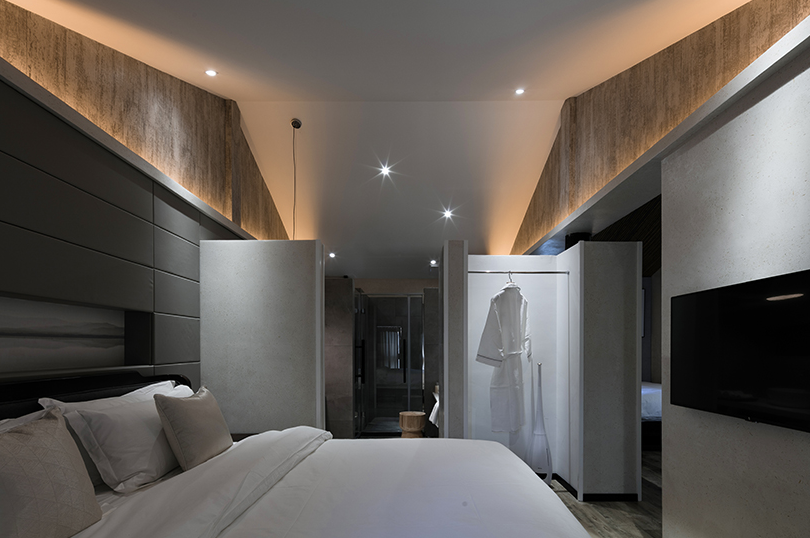 當(dāng)你走上臺階時(shí),蜿蜒的小徑將你帶到接待室。陰影與水墨山水畫相似,時(shí)間也在這樣的氣氛中緩緩下來。