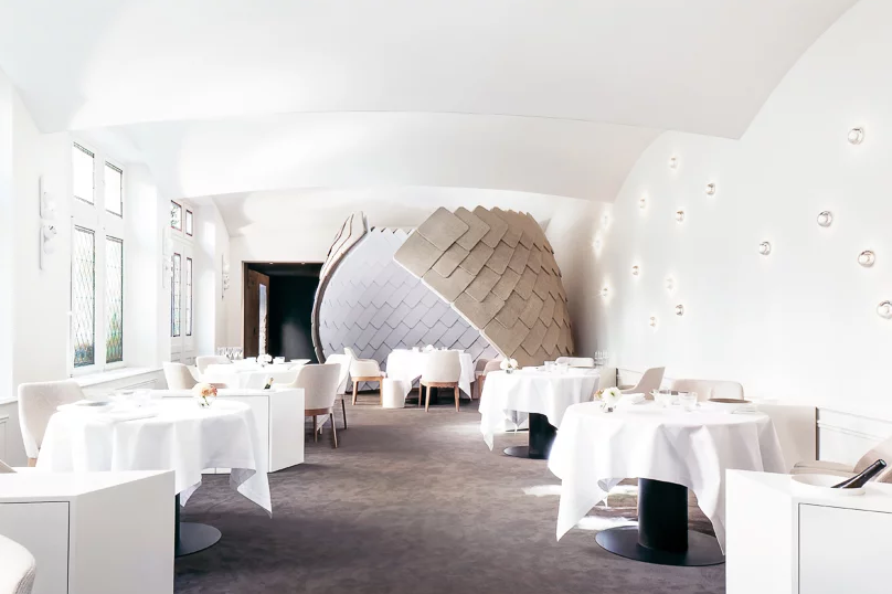 位于法國科爾馬的阿爾薩斯葡萄酒區(qū)中心,'la maisondestêtes'(或英語中的'the head of heads')是一座歷史悠久的建筑,建于1609年,其名稱源自109小頭雕塑,華麗的文藝復(fù)興風(fēng)格的外觀。這座建筑今天是一家擁有兩家餐廳的五星級酒店,是科爾馬的主要景點(diǎn)之一,面向最近由herzog和de meuron進(jìn)行翻新和擴(kuò)建的無人博物館。除了現(xiàn)有的小酒館,一家供應(yīng)傳統(tǒng)法國和阿爾薩斯菜肴的餐廳外,F(xiàn) + F studio的客戶eric girardin還想創(chuàng)建一家新餐廳,提供現(xiàn)代美食,翻新大堂,公共區(qū)域和酒店客房。